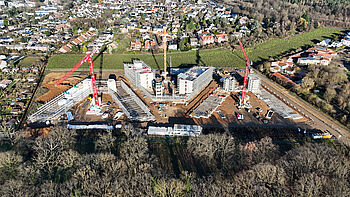 530 Apartments für Studenten im Holzmodulbau und ein Holzelementgebäude mit Seminarräumen werden in Erftstadt entstehen. Der Ville Campus Erftstadt steht für eine vorbildliche ökologische Herangehensweise und einen ganzheitlichen Planungsansatz mit dem Ziel, einen neuen zukunftsweisenden Ort für die Menschen und die Umwelt der Stadt Erftstadt zu schaffen. Der Bildungscampus ist ein ökologisches und barrierefreies Gebäudeensemble nach dem Cradle to Cradle®-Gedanken. Das mehrgeschossige Holzelementgebäude ist flexibel nutzbar und für Bildungs-, Forschungs- und/oder Entwicklungseinrichtungen vorgesehen. Zwei mehrgeschossige Wohngebäude sind im nachhaltigen Holzmodulbau geplant. Das Gebäudeensemble in Holz, wie auch das biodiversitätsfördernde Freiraumkonzept mit Regenwasserretention und -versickerung der Landschaftsarchitekten Greenbox, werden an diesem Standort ein nachhaltiges und ökologisches Leuchtturmprojekt für die Stadt Erftstadt entstehen lassen.