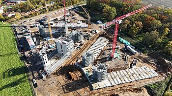 - Geringe Baustellenemissionen durch Elementierung und hohe Vorfertigungsgrade